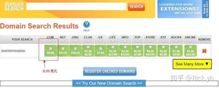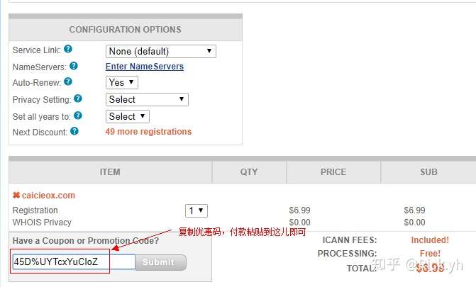 备注:此图是去年的截图,按去年的价格优惠后注册com域名只需要5.99美元,今年各大注册商,包括国内的也涨价了,实际优惠后需要花7.99美元。