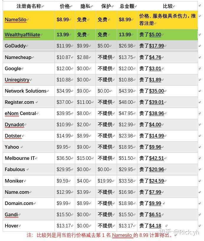 各个注册商价格有时候会变,但他们价格变化并不影响此排名。
